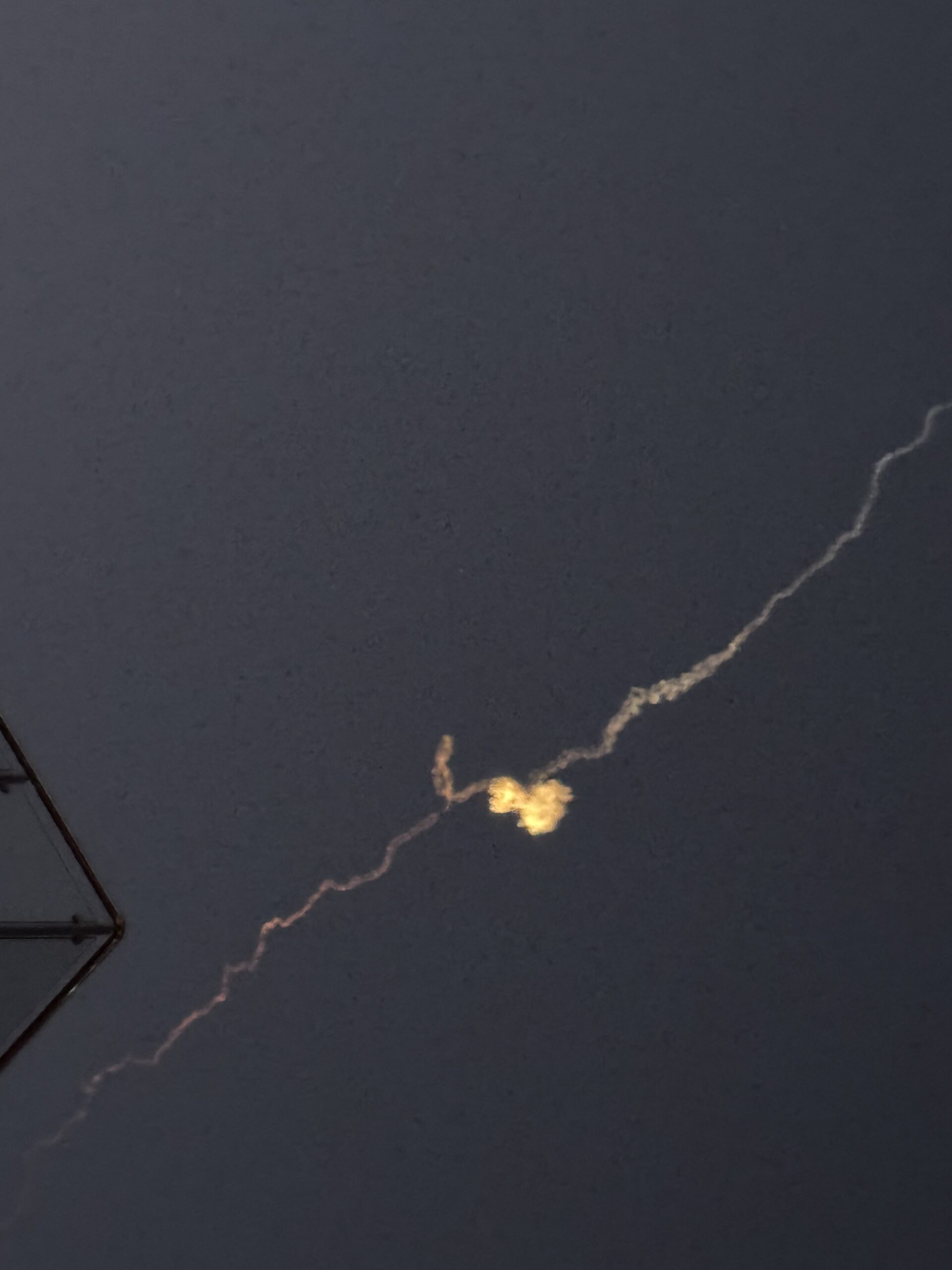 Photo of a missile intercept taken by Alden Solovy in Jerusalem on the way to a bomb shelter near his home.